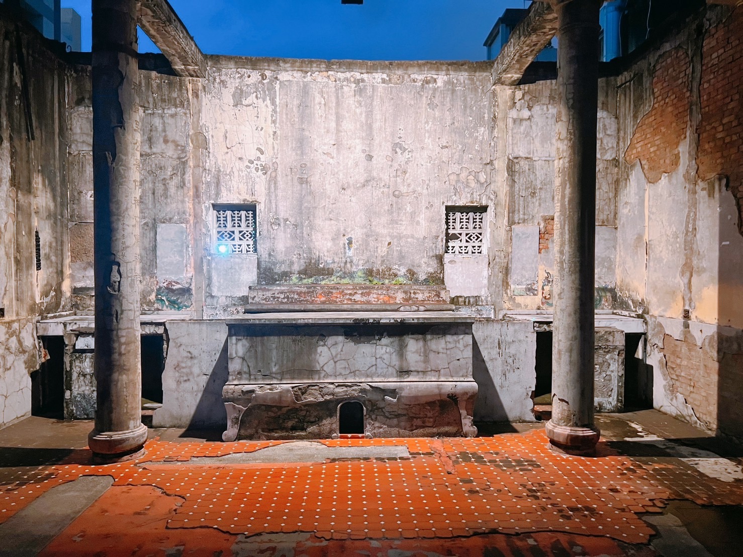 二、「地」現有地理方位不佳,拜庭不見天、路行在虎爿、廁所估龍爿,龍虎必相鬥。重建事宜要慎重,三日香案祭天台以後,大事方可決定。
